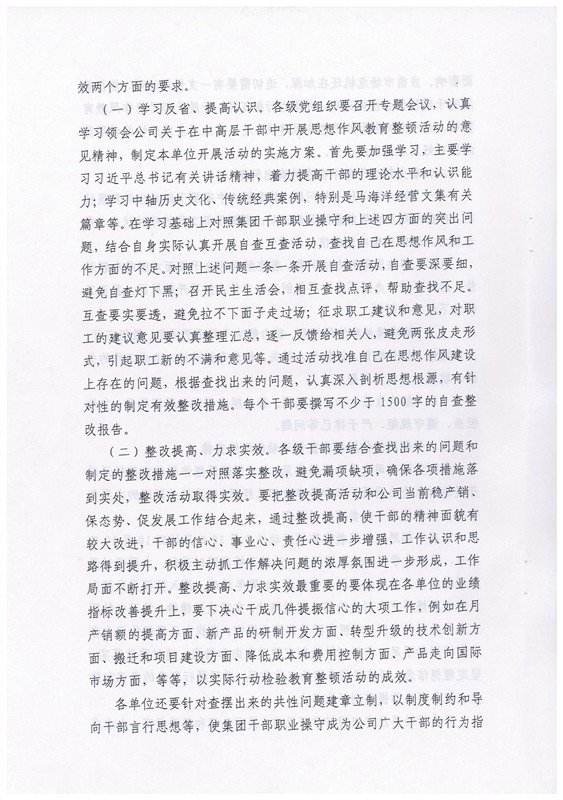 關于在中高層干部中開展思想作風教育整頓活動的意見