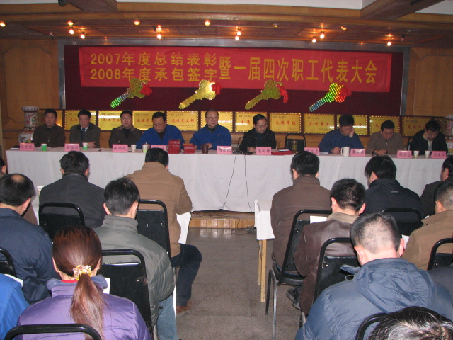 2月4日上午,公司四樓會(huì)議室洋溢著節(jié)日的喜慶。公司2007年度總結(jié)表彰、2008年承包合同簽字暨第一屆四次職工代表大會(huì)在這里隆重召開。公司領(lǐng)導(dǎo)侯向保、馮安民、宋元祥、李建軍、鄭小立、王翔順、王建華、任順戰(zhàn)、任忠民和全體中級(jí)管理人員,2007年度“勞動(dòng)模范”、“模范黨員”及職工代表、各團(tuán)支部書記等近200人參加會(huì)議。會(huì)議由公司黨委副書記馮安民主持。