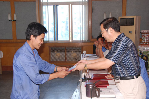 金結(jié)廠廠長王超生、重機(jī)廠廠長劉普戰(zhàn)代表先進(jìn)分廠發(fā)言,分別介紹了其分廠克服困難,勇奪先進(jìn)的經(jīng)驗(yàn)。機(jī)電廠副廠長劉貴生介紹分廠產(chǎn)值由小到大,勇創(chuàng)市場的經(jīng)驗(yàn)。重機(jī)廠鉗工郭文海代表新任“首席員工”發(fā)言,表示要繼續(xù)努力,刻苦學(xué)習(xí)現(xiàn)代科技知識(shí)和先進(jìn)技能,崗位成才,爭創(chuàng)一流,為搞好工作提供堅(jiān)定的技術(shù)保證。